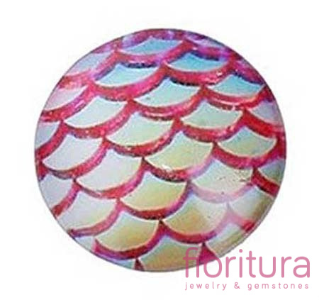 KABOSZON SZKLANY WZÓR RYBIEJ ŁUSKI 10MM KOLOR RED