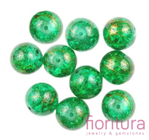 KORALIKI SZKLANE CRACLE KULA 18MM KOLOR AMAZON ZE ZŁOTĄ NITKĄ