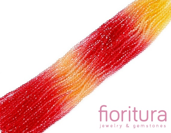 • KORALIKI SZKLANE FASETOWANE BICON 4,5x4MM KOLOR CZERWONY/ŻÓŁTY CIENIOWANY