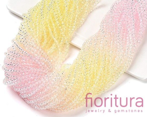 KORALIKI SZKLANE OPONKA FASETOWANA 4,5x3,6MM KOLOR RÓŻOWY/ŻÓŁTY CIENIOWANY TRANSPARENTNY