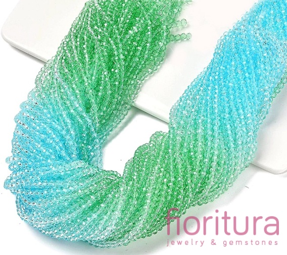 KORALIKI SZKLANE OPONKA FASETOWANA 4,5x3,6MM KOLOR ZIELONY/NIEBIESKI CIENIOWANY TRANSPARENTNY