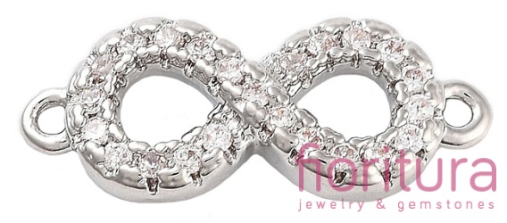 • ŁĄCZNIK NIESKOŃCZONOŚĆ  Z SZEŚCIENNYMI CYRKONIAMI CRYSTAL 6x15x2,5MM KOLOR PLATINUM