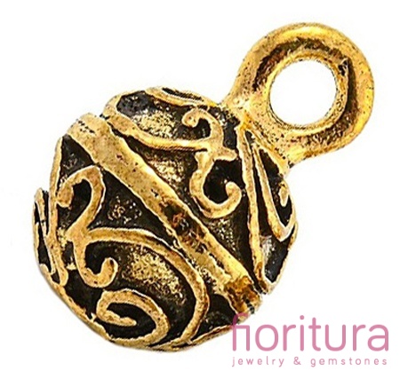 ZAWIESZKA PRZESTRZENNA 3D KULA W STYLU TYBETAŃSKIM 13x8,5MM KOLOR ANTYCZNE ZŁOTO