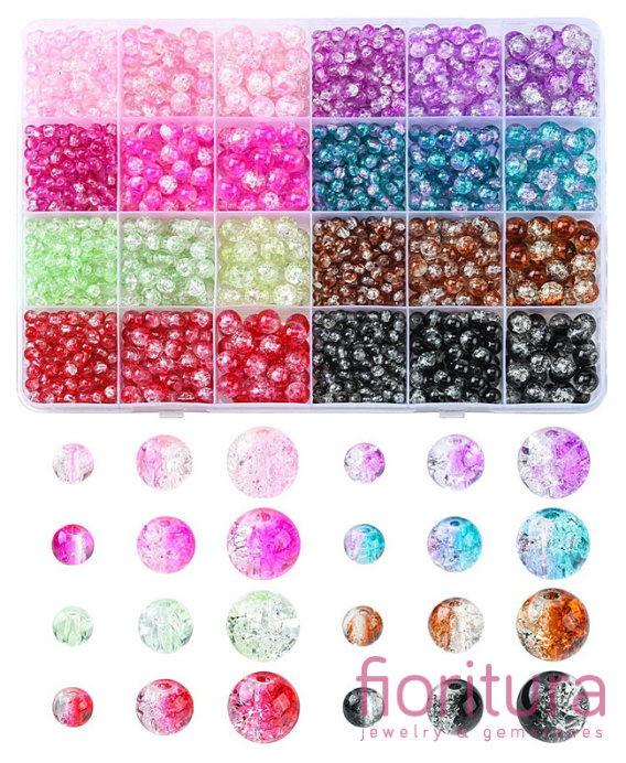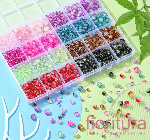 ZESTAW KORALIKÓW SZKLANYCH CRACLE KOLOR MIESZANY TRANSPARENTNY 24 RODZAJE 1880 SZT