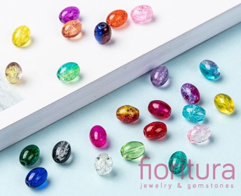 ZESTAW KORALIKÓW SZKLANYCH CRACLE OWAL 8x6MM 24 KOLORY 1200 SZT