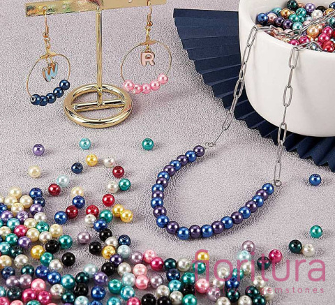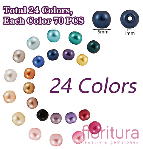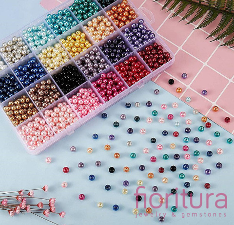 ZESTAW KORALIKÓW SZKLANYCH PERŁOWYCH KULA 6MM 24 KOLORY 1680 SZT