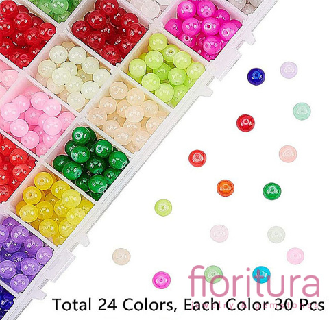 ZESTAW KORALIKÓW SZKLANYCH POWLEKANYCH IMITACJA JADEITU KULA 9MM 24 KOLORÓW 720 SZT