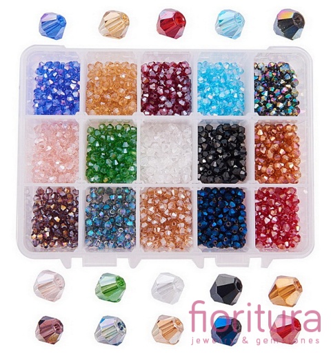 ZESTAW KORALIKÓW SZKLANYCH BICON FASETOWANE 4MM 15 KOLORÓW 1800 SZT