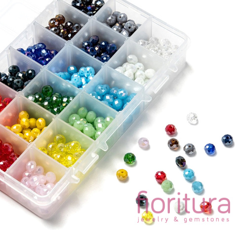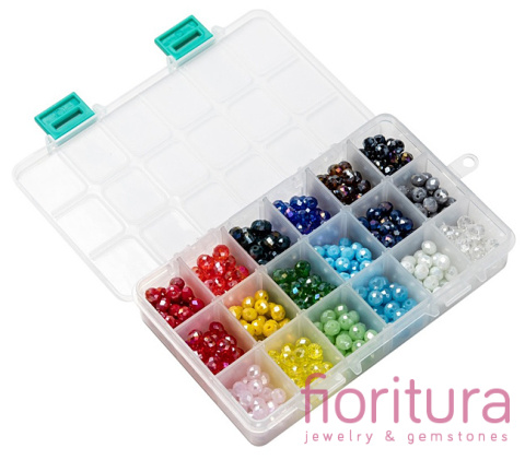 ZESTAW KORALIKÓW SZKLANYCH OPONKA FASETOWANA 8x6MM 18 KOLORÓW 540 SZT
