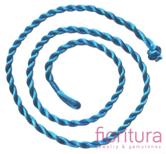 • BAZA NASZYJNIKA, BRANSOLETKI SZNUR ATŁASOWY SKRĘCANY Z ZAPIĘCIEM 47-52CM KOLOR NIEBIESKI