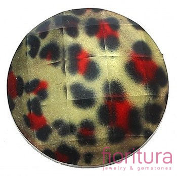 KABOSZON AKRYLOWY FASETOWANY WZÓR LEOPARDA KOŁO 16MM KOLOR ZŁOTY/CZARNY/CZERWONY