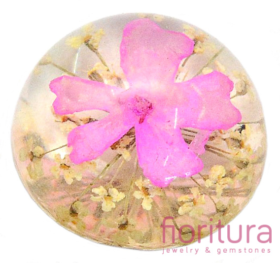 KABOSZON SUSZONY KWIAT ZATOPIONY W ŻYWICY PÓŁKULA 16x8MM KOLOR LEMON CHIFFON
