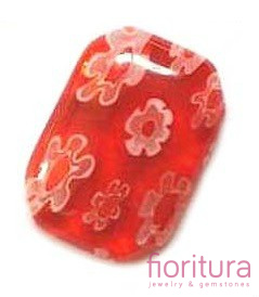 KABOSZON SZKLANY MILLEFIORI PROSTOKĄT 14X10MM KOLOR CZERWONY