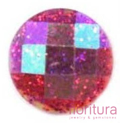 • KABOSZON Z ŻYWICY FASETOWANY TRANSPARENTNY Z BROKATEM KOŁO 10MM KOLOR FUCHSIA AB