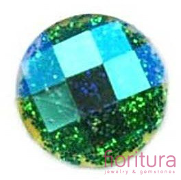 KABOSZON Z ŻYWICY FASETOWANY TRANSPARENTNY Z BROKATEM KOŁO 10MM KOLOR GREEN AB