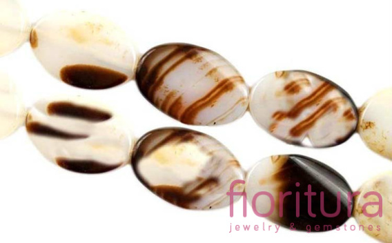 • KAMIEŃ NATURALNY AGAT BIAŁO-BRĄZOWY OWAL PŁASKI 20x30mm