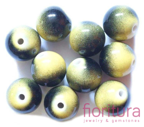 KORALIKI AKRYLOWE KULA 19MM KOLOR ŻÓŁTY/CZARNY
