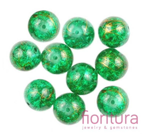 KORALIKI SZKLANE CRACLE KULA 14MM KOLOR AMAZON ZE ZŁOTĄ NITKĄ
