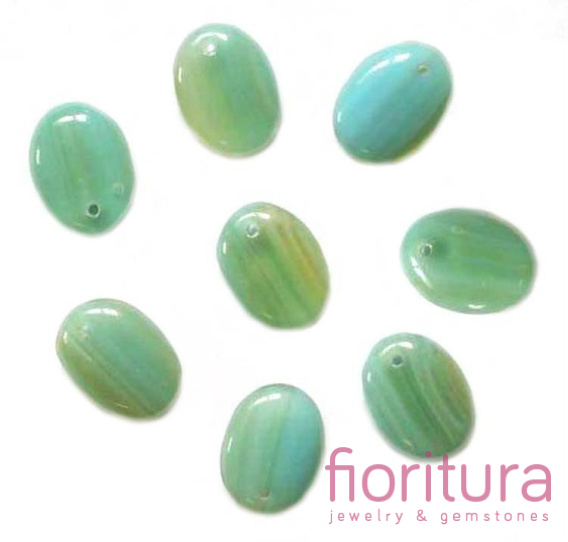 • KORALIKI SZKLANE OWAL PŁASKI 12X9MM KOLOR ZIELONO-NIEBIESKI