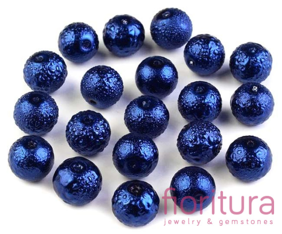 PERŁA SZKLANA ŻEBROWANA KULA 10MM KOLOR NIEBIESKI SZAFIR