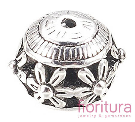 PRZEKŁADKA AŻUROWA KWIATY KULA 17x14MM KOLOR STARE SREBRO