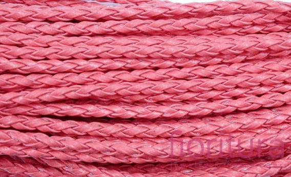 • RZEMIEŃ PLECIONY SKÓRA EKOLOGICZNA 3MM KOLOR RÓŻOWY