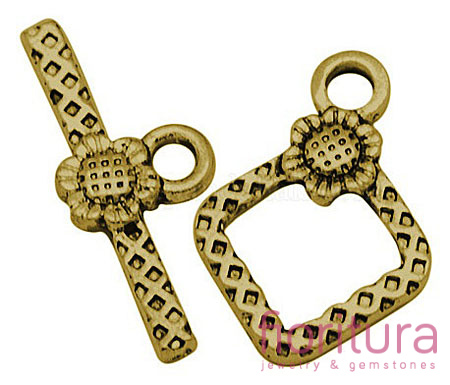ZAPIĘCIE PRZEKŁADKOWE Z KWIATEM 21x15MM KOLOR STARE ZŁOTY