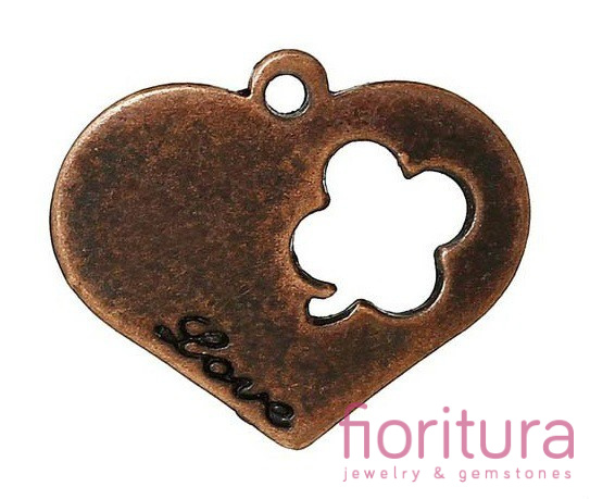 • ZAWIESZKA SERCE Z NAPISEM LOVE 20x17MM KOLOR MIEDZIANY