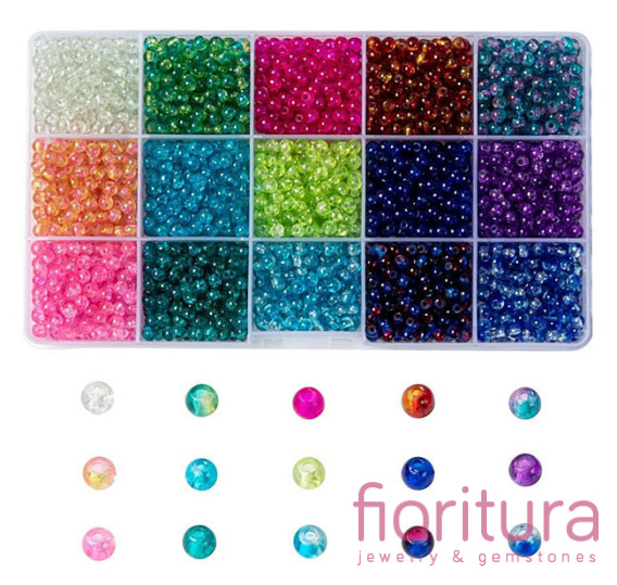 ZESTAW KORALIKÓW SZKLANYCH CRACLE KULA 4MM 15 KOLORY 3000 SZT