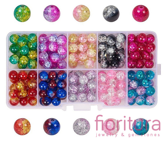 • ZESTAW KORALIKÓW SZKLANYCH CRACLE  KULA 8MM 10 KOLORÓW 180-200 SZT