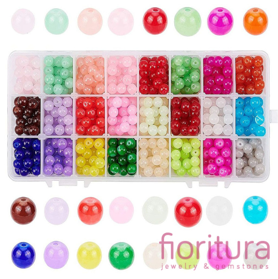 ZESTAW KORALIKÓW SZKLANYCH POWLEKANYCH IMITACJA JADEITU KULA 9MM 24 KOLORÓW 720 SZT