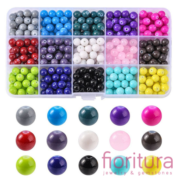 ZESTAW KORALIKÓW SZKLANYCH POWLEKANYCH KULA 8MM 15 KOLORÓW 330-345 SZT