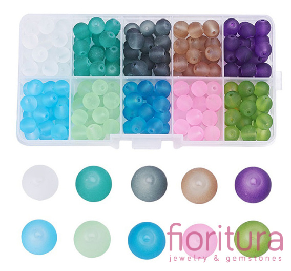 ZESTAW KORALIKÓW SZKLANYCH MATOWYCH KULA 8MM 10 KOLORÓW 200-205 SZT