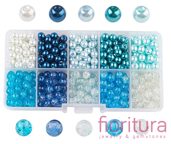 • ZESTAW KORALIKÓW SZKLANYCH PEREŁ I CRACKLE KULA 6MM 10 KOLORÓW 500 SZT